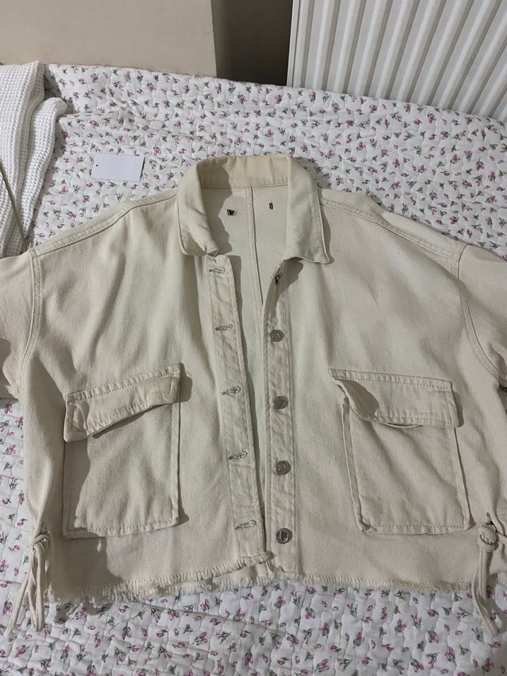 Düğmeli, uzun kollu, keten kumaştan yapılmış beyaz renkli, bol kesim midi uzunlukta kadın ceket. Notlu yaka ve kullanışlı ön ceplere sahiptir.