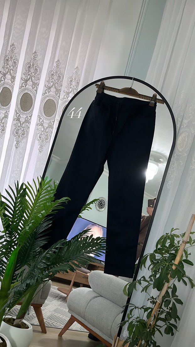Siyah, ipeksi kumaştan, kemerli, midi boy, regular fit kadın pantolon. Ofis ve günlük sokak stili için uygundur.