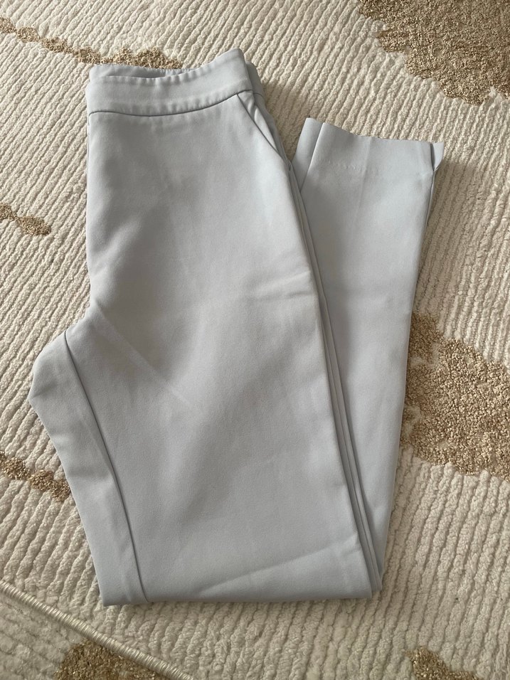Bebe mavisi renkte, kadın kumaş pantolon. Düz ve sade tasarımıyla ofis için uygun, rahat ve şık bir görünüm sunar. Zühre markası zühreden alındı bana bol oldugu için pens attım acılabilir 38 beden hic bir kusuru yoktur 2 defa giyildi sadece