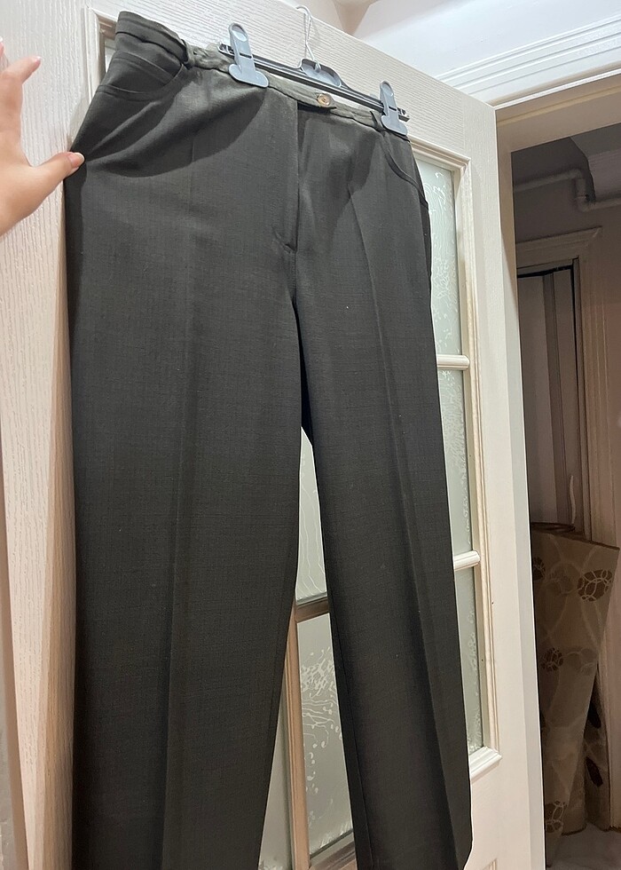 Selen kadın kumaş pantolon 40 bedene uyumlu beli lastikli bu sebeple lickralı bel tam oturmakta fakat paçalarını yaptirdigim için kısa boyluysanız tam size göre