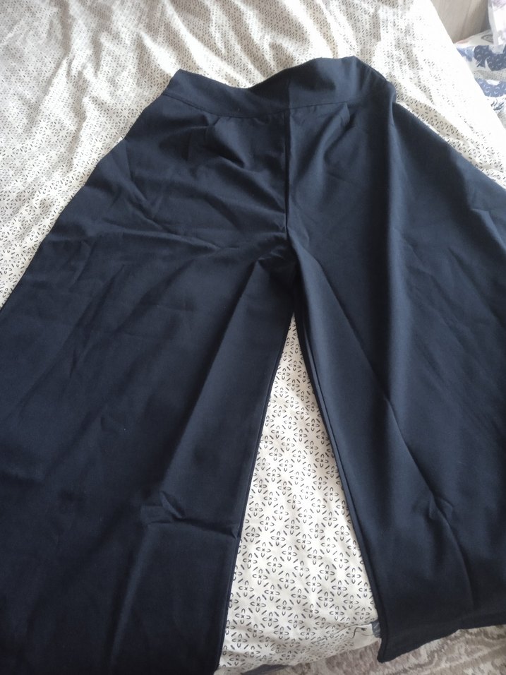 Siyah, uzun paça, regular fit kadın kumaş pantolon, dantel detaylı, minimal ve normcore tarzda, günlük kullanıma uygun. rengi siyah gibi ama laciverttir. boyu 105 bel en 42 basen en 40