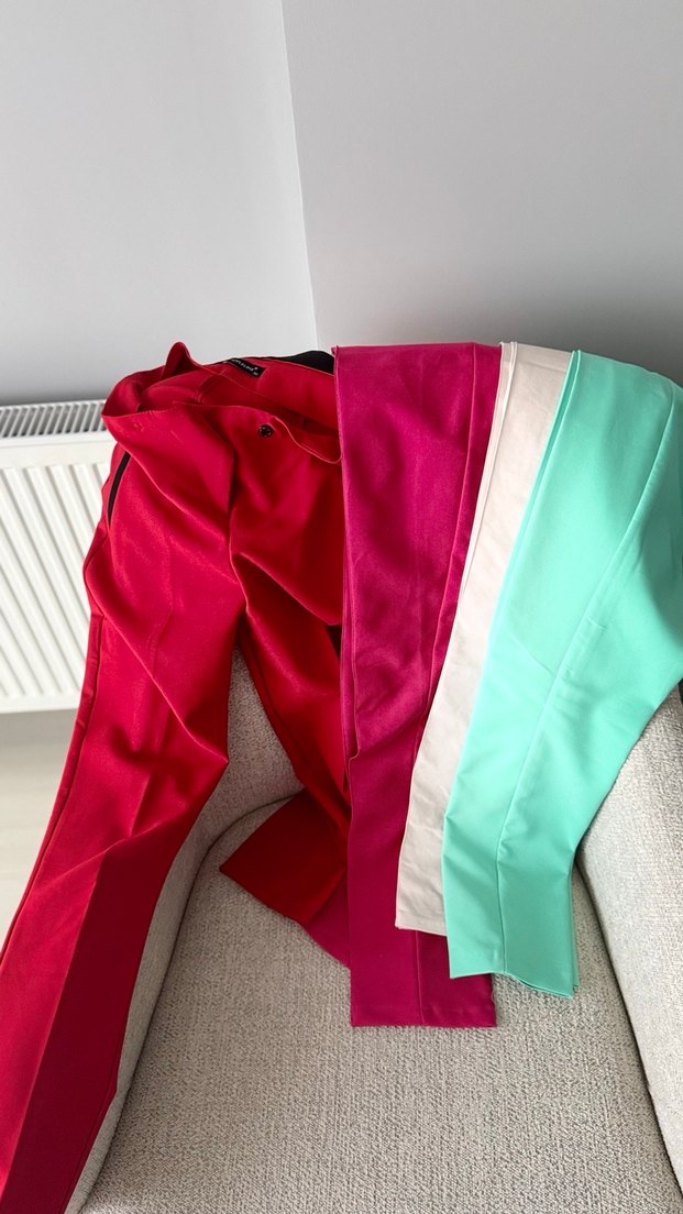 Uzun boy, regular fit ve drapeli tasarıma sahip kadın kumaş pantolonlar, yumuşak sentetik kumaştan pastel sokak stili renklerinde. Günlük athleisure için uygundur. En az 500 tl ye kargoya gidiyorum dipnot. Adedi 70 4 adedi 200 tl. İkisi appline marka 36 beden diğer ikisi özel dikim 36 beden.