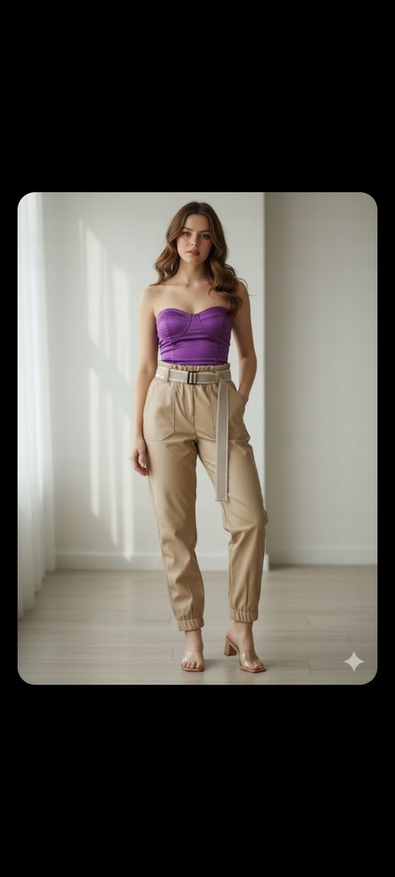 Kadınlar için açık mor midi kumaş pantolon, regular fit ve kemerli bel detayına sahip. Sentetik kumaştan üretilmiş, günlük sokak stili için uygun.