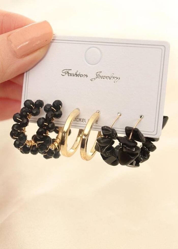 Siyah Renk Doğal Taş Detay Küpe Seti