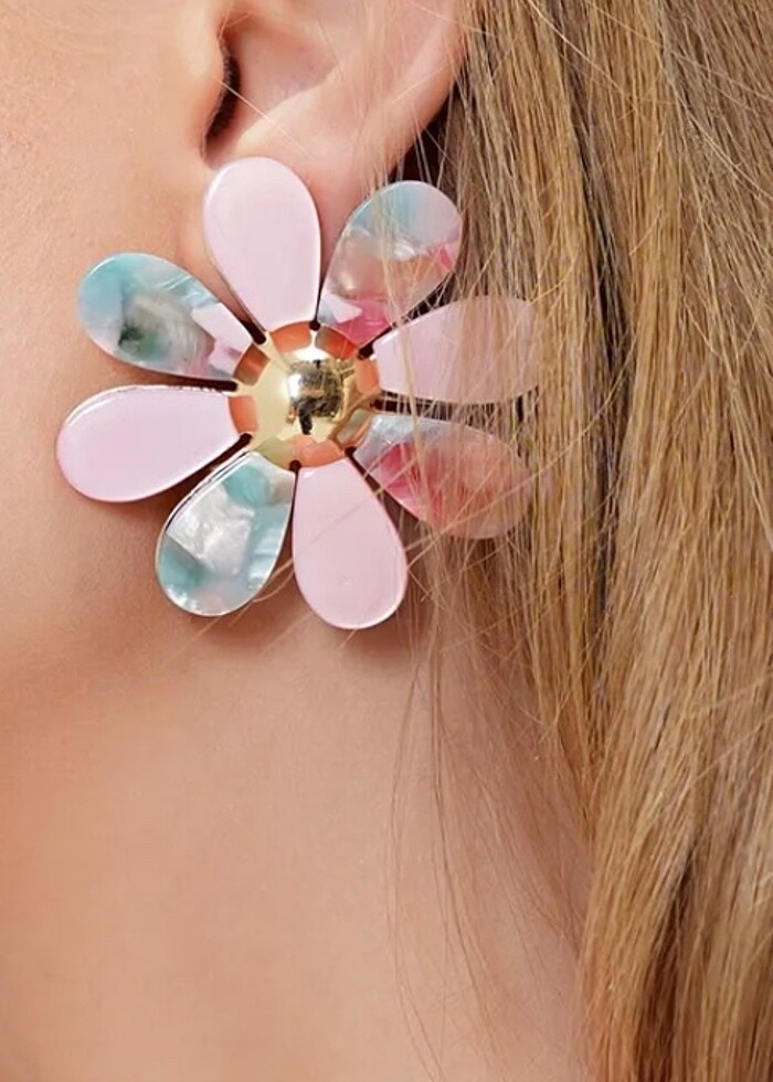 Pembe papatya motifli sedefli küpe