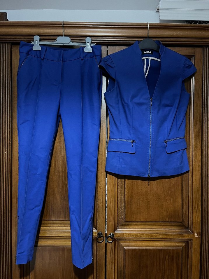Canlı mavi tonu ve şık tasarımıyla dikkat çeken NetWork marka iki parçalı takım, modern kesimi ve kaliteli kumaşıyla hem ofis hem de özel gün kombinleri için ideal bir seçenektir. Takım; bele oturan, fermuarlı, cepli üst parça ile aynı renkte dar kesim pantolondan oluşmaktadır. Kumaşı kaliteli, formu kusursuz, genel durumu ise tertemiz. Yalnızca birkaç kez giyildi. Bedeni artık uymadığı için satmaya karar verdim. Kumaş içeriği: %96 pamuk, %4 likra Beden: 34 Fiyat: 1.750 TL (Alt - üst takım kategorisi olmadığı için "kumaş pantolon" olarak işaretledim fakat takım olarak gönderilecektir.)