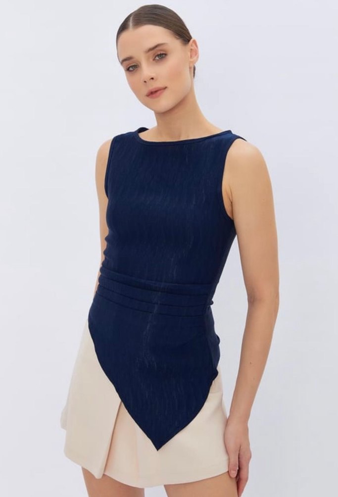 Kadın Lacivert asimetrik bluz