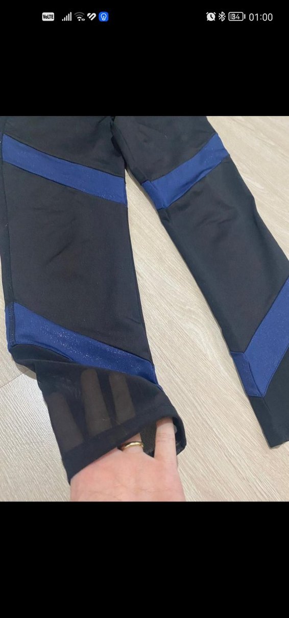 Kadınlar için lacivert bantlı, Velcro detaylı, sentetik kumaştan yapılmış, spor ve sokak tarzı için uygun tayt. ♀️