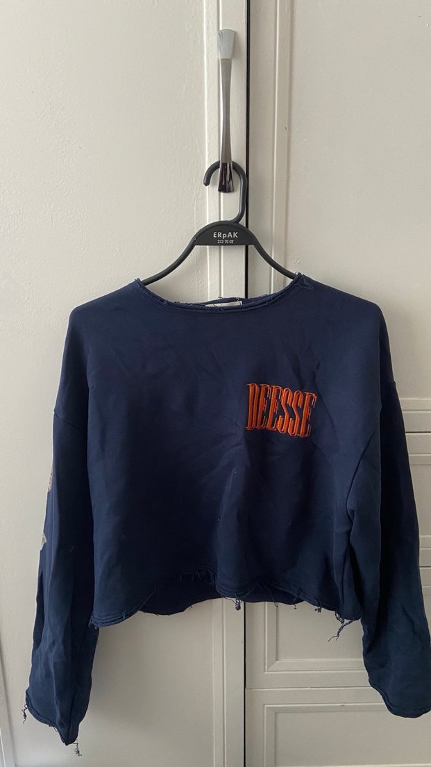 Kadınlar için crew neck ve uzun kollu, bol kesim denim sweatshirt. Koyu mavi ve baskılı detaylarıyla rahat ve şık bir görünüm sunar. Günlük kullanım için uygundur.