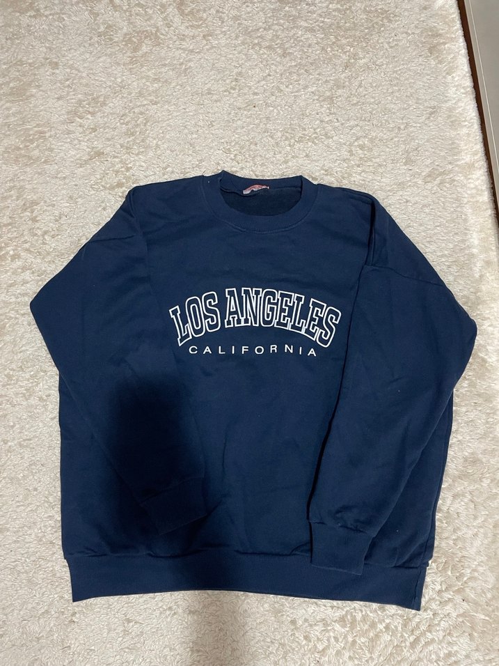 Lacivert renkte, uzun kollu, baskılı ve rahat kesimden oluşan denim sweatshirt. "Los Angeles California" yazısı ile günlük şıklık sağlar.