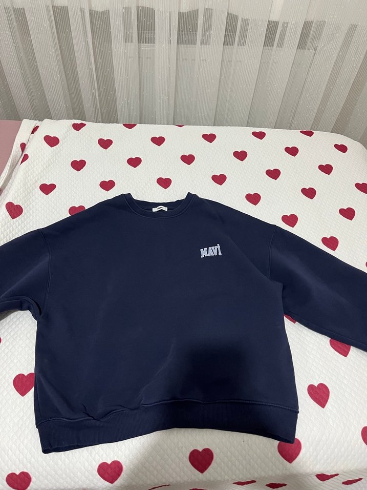 Kadınlar için tasarlanmış, pamuk kumaştan, lacivert renkte, baskılı ve bol kesim crew neck uzun kollu sweatshirt. Günlük rahat kullanım için uygundur.