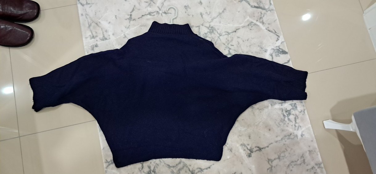 Fitted kesim, boğazlı yakalı ve uzun kollu kadın lacivert triko kazak. Yumuşak, sıcak kumaştan örülmüştür ve günlük kullanıma uygundur.