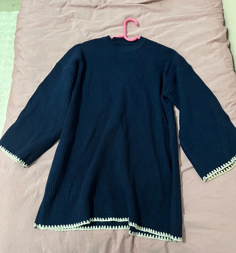 Bu kadın triko kazak, boğazlı ve uzun kollu olup, bol kesim ve midi boydadır. Pastel mavi rengi ve desensiz tasarımıyla günlük kullanıma uygun rahat bir normcore stildir.