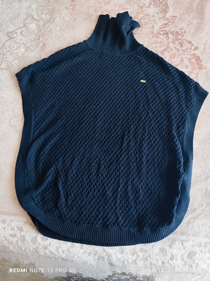 Kadınlar için boğazlı, kısa kollu ve bol kesim triko kazak. Lacivert renkte, rahat ve gündelik kullanıma uygun bir parçadır.