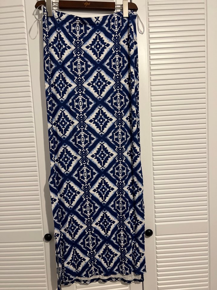 Kadınlar için lacivert tie-dye desenli, drapeli ve vücuda oturan uzun bohem etek, yumuşak tekstil kumaştan üretilmiştir. Esnek üüründür l ve xl bedene rahatlıkla olur