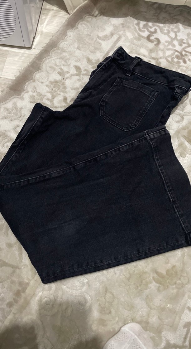 Kadın siyah kot bol kesim ve normal boyda denim pantolon. Rahat ve zahmetsiz şıklık sunar, günlük kullanıma uygundur. Desensiz ve trend bir tarz sağlar. Hiç giyilmedi yeni 70kilo oluyor üstünde beden yazmıyor haberiniz olsun