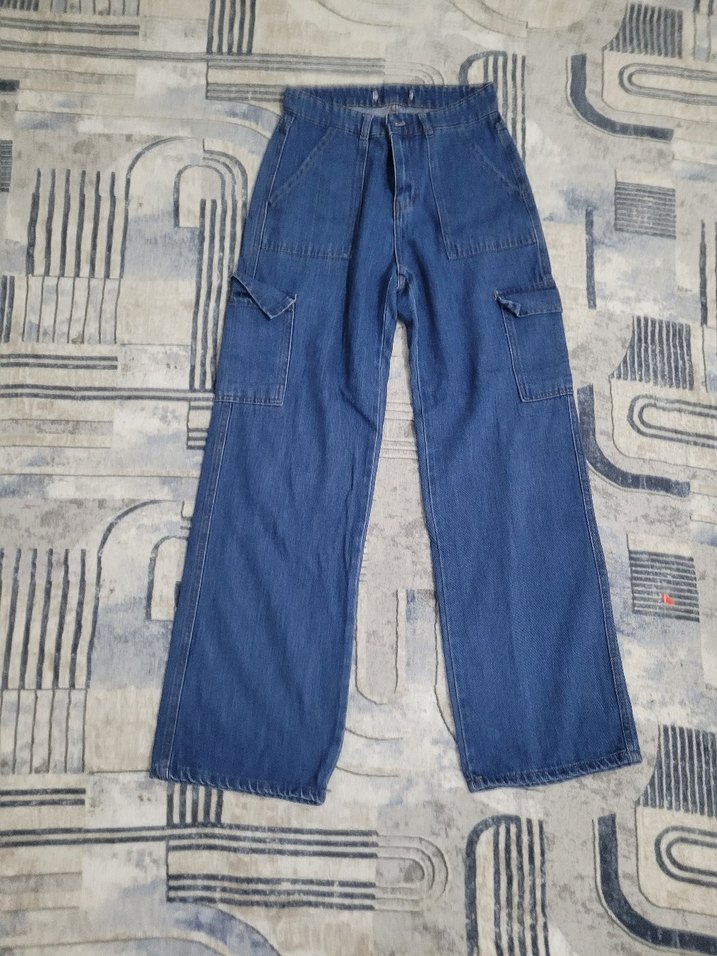Midi boy, bol kesim lacivert denim pantolon, büyük ceplerle günlük rahat sokak stili sunar. Zahmetsiz şıklık sağlar.
