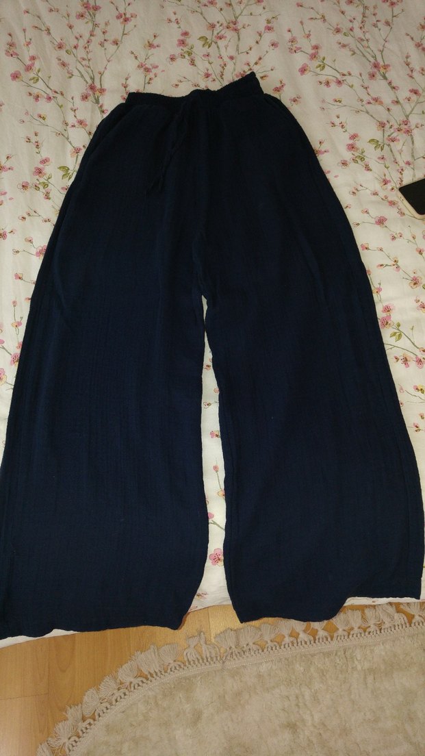 Hiç kullanmadım müslin kumaş bol paça pantolon.Boy:100 cm