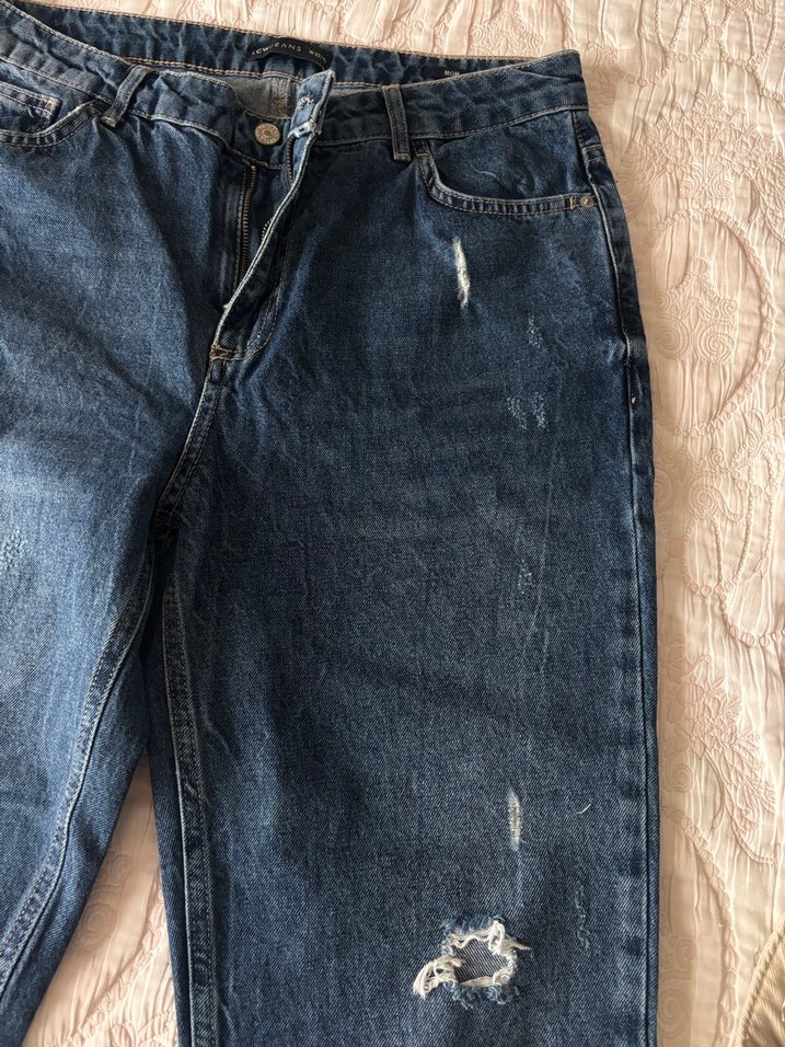 Lacivert bol kesim kot pantolon, tokalı detaylı, midi boyda, rahat ve günlük sokak stili için uygun.