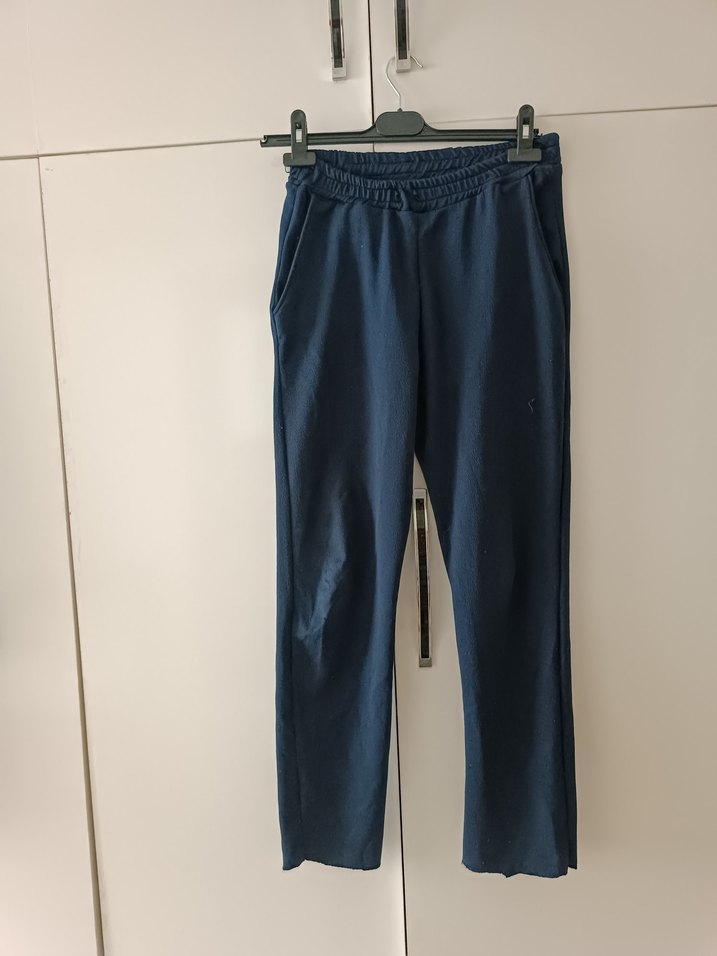 Kadınlar için lacivert kot kumaştan, bol kesim ve midi boyda rahat eşofman. Gündelik kullanım için zahmetsiz şıklık sunar.