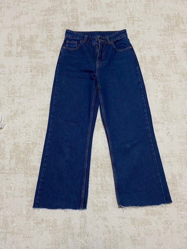 Kadın Lacivert Bol Kesim Midi Kot Pantolon
