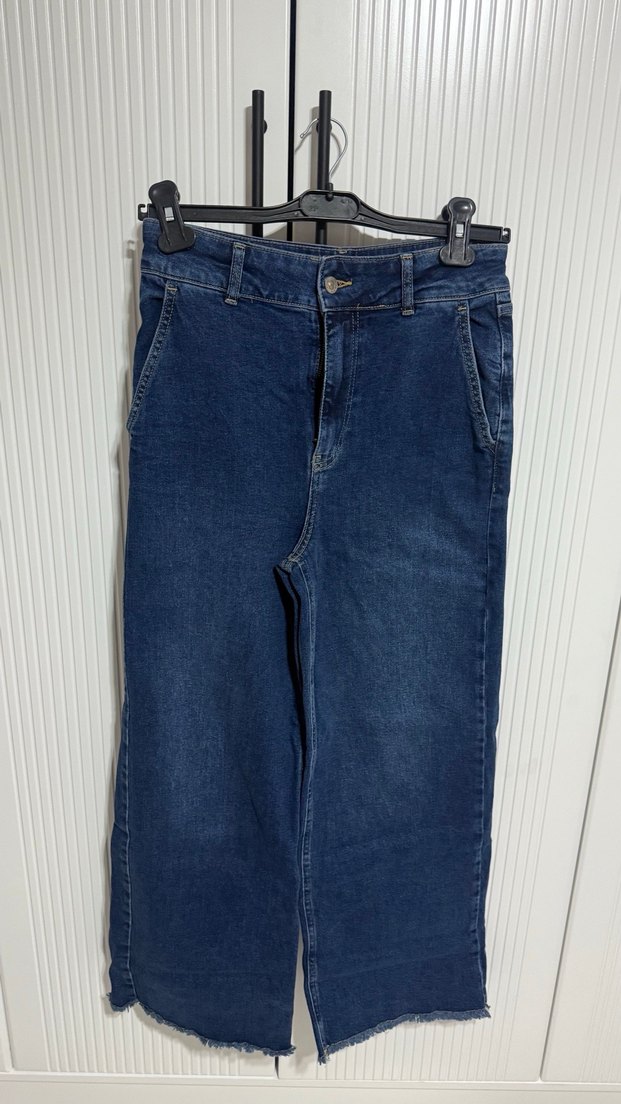 Kadınlar için lacivert renkte, bol kesim ve midi boy kot pantolon. Rahat ve şık, günlük kullanıma uygun normcore tarzda kot pantolon.