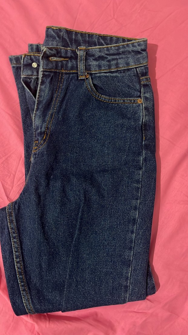 26 beden Lacivert, bol kesim ve midi boy kot pantolon, günlük kullanım için rahat ve şık bir sokak stili ile sunar.