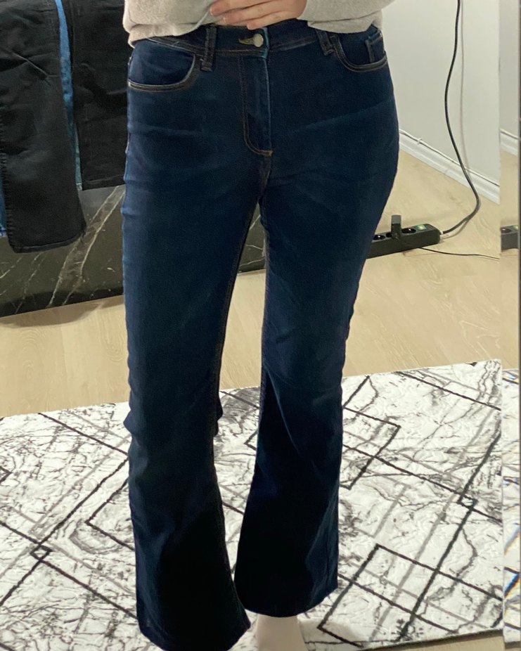 Kadın Lacivert Bol Kesim Midi Kot Pantolon