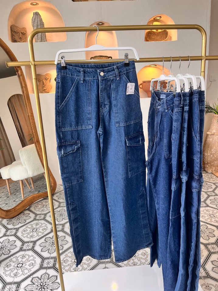 Lacivert kot pantolon, bol kesim ve midi boyda, rahat bir bağlama deseni ile gündelik kullanıma uygun şık bir tasarım sunar.
