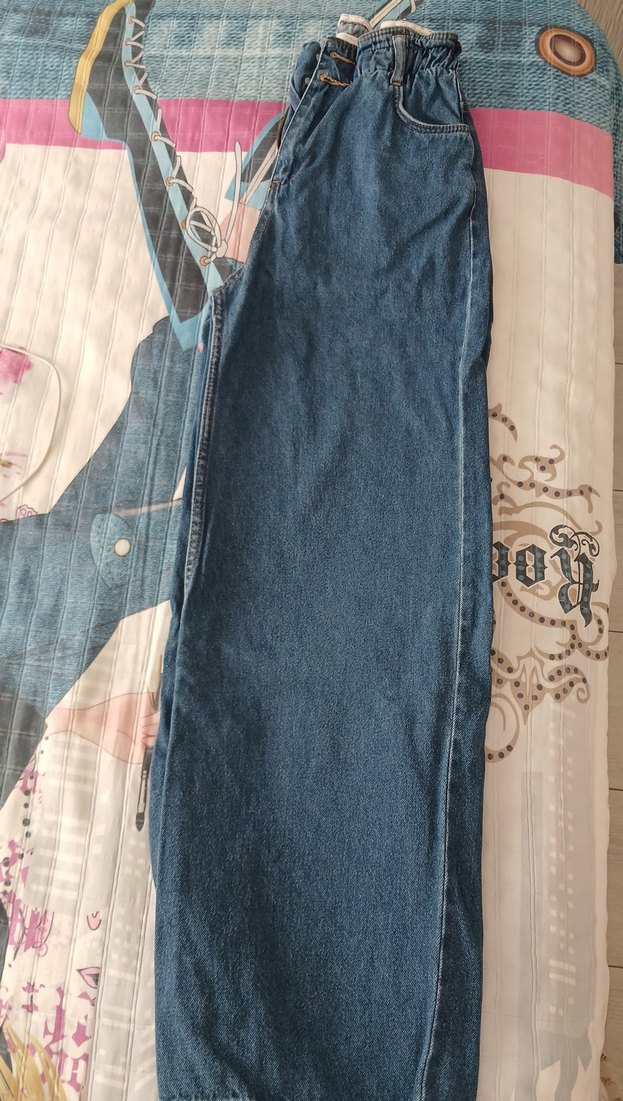 Lacivert renkte, bol kesim ve uzun boy kot pantolon. Dayanıklı denim kumaştan, fermuarlı detaylarla günlük rahat sokak stili için uygundur. çok az giyildi sıfır boy 103 cm