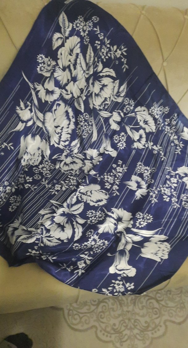 Kadınlar için ipeksi dokulu, lacivert zemin üzerine beyaz çiçek desenli fular. Drapeli tarzıyla vintage ve şık bir görünüm sunar. 1 kere kullanıldı sıfırdan farksızdır