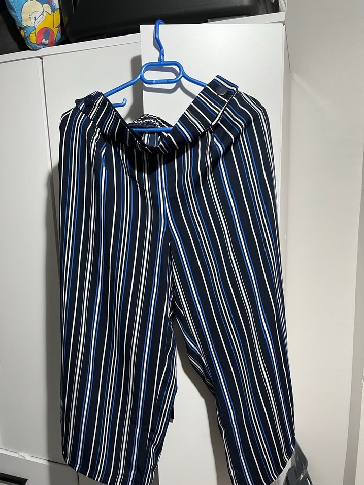 Kadın Lacivert Çizgili Kısa Kumaş Pantolon