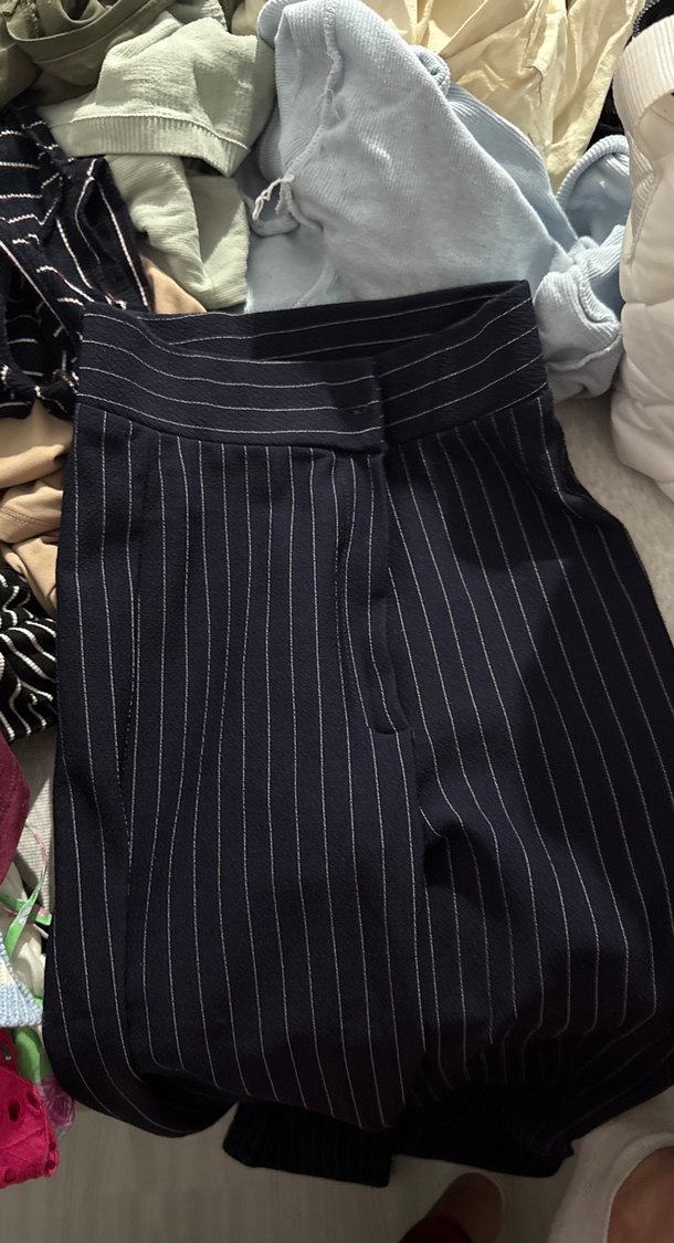 Kadın Lacivert Çizgili Pilili Kumaş Pantolon
