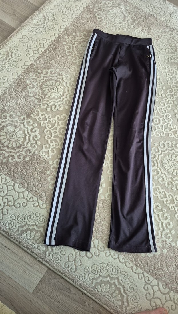 Kadınlar için yan çizgili ve bağcıklı detaylara sahip, günlük sokak modası için düz sentetik kumaştan yapılmış fitted eşofman altı. paçalarda hafif yıpranma vardır fiyat ondan uygundur
