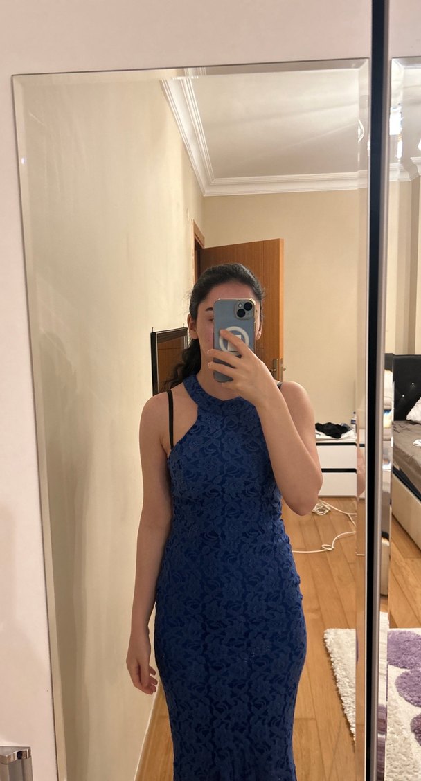Kadın Lacivert Dantel Midi Elbise