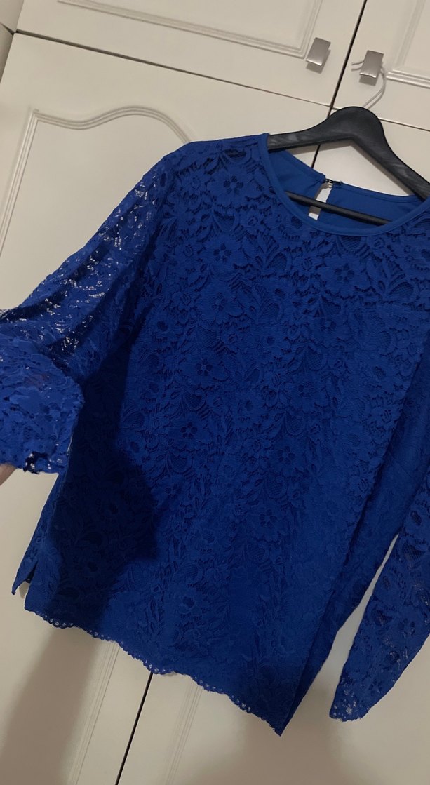 Kadın Lacivert Dantel Uzun Kollu Bluz