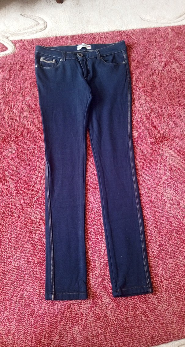 Dar kesim, fermuarlı lacivert denim pantolon. Normal midi boyda, sokak modasına uygun rahat ve şık tasarım. Günlük kullanıma uygundur. 86 cm boyunda