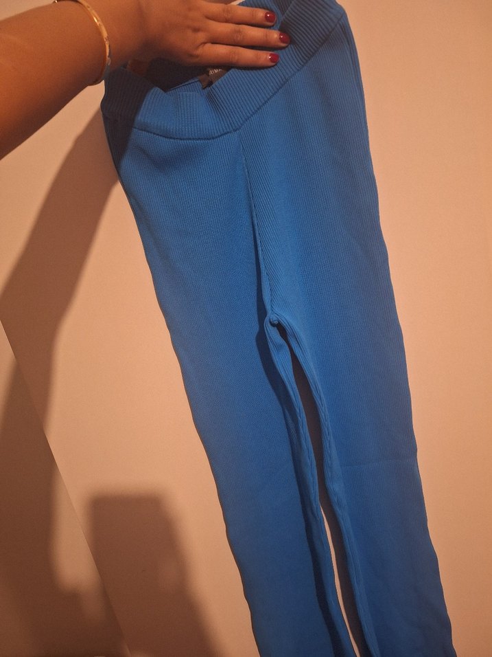 Kadınlar için dar kesim, koyu mavi renkte ve yumuşak sentetik kumaştan yapılmış pantolonlar. Midi boy, günlük kullanıma uygun, rahat ve şık bir tarz sunar.