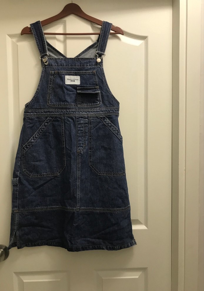 Lacivert denimden yapılmış, askılı ve tokalı, straplez yaka tasarımlı bol kesim midi salopet. Günlük kullanım için uygundur. ️