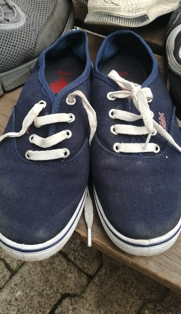 Kadınlar için mavi denim kumaştan, bağcıklı ve topuksuz spor ayakkabılar. Günlük kullanım ve sokak stiline uygun.