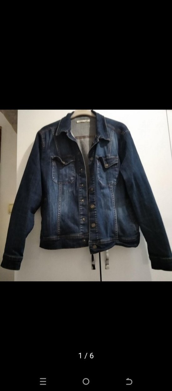 Kadınlar için düğmeli, uzun kollu, lacivert denim ceket. Normal boyda, regular fit ve çıtçıtlı yakaya sahip, günlük sokak tarzı için uygun.