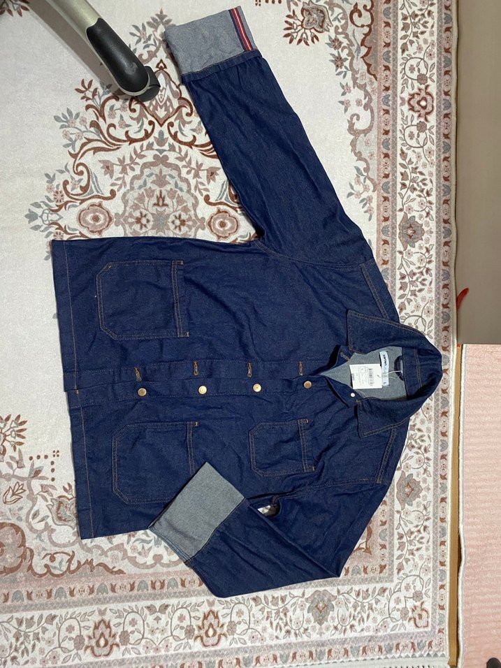 Gold renk düğmeli, normal boyda, uzun kollu denim ceket. Regular fit ve notched lapel yakaya sahip, günlük kullanıma uygun.