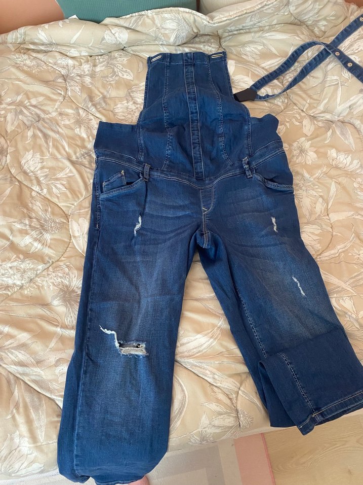 Kadın Lacivert Denim Hamile Askılı Tulum
