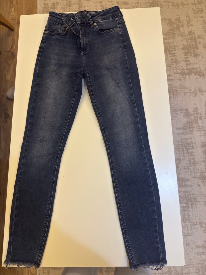Bu kadın lacivert denim jean, normal midi boyda ve desen içermeyen sade tasarımıyla rahat ve şık bir görünüm sunar.
