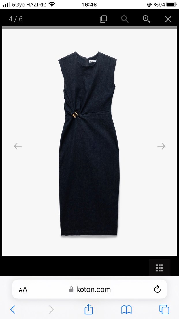 Kolsuz lacivert denim elbise, kemerli ve yakası kesik detaylıdır. Uzun boyu ve sade tasarımıyla iş ortamına uygundur. Moda tutkunları için normcore şıklık sunar.
