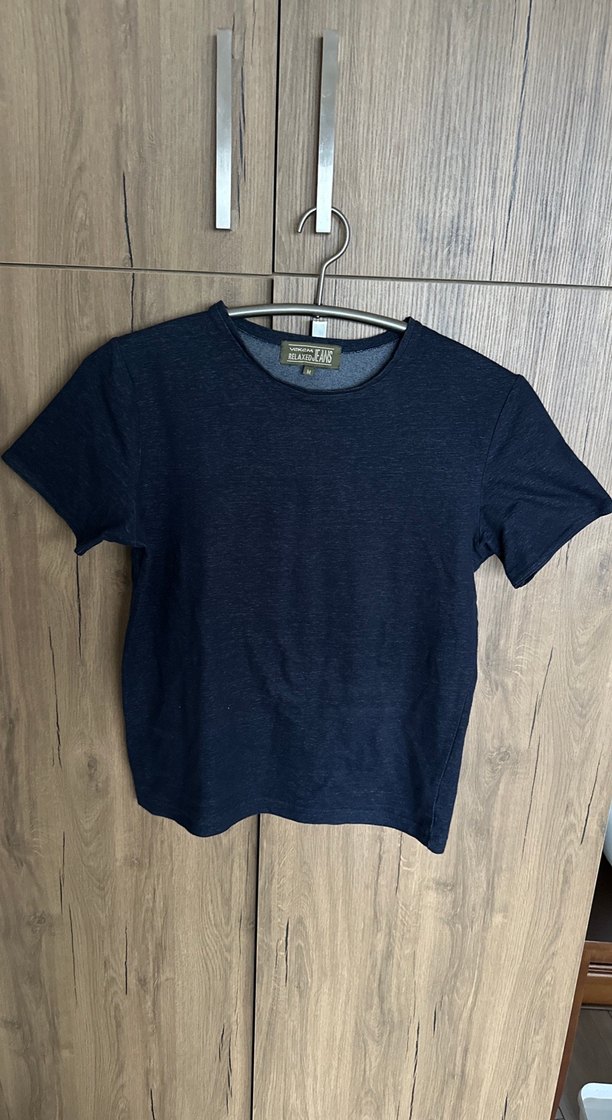 Kadınlar için kısa kollu, yuvarlak yakalı lacivert denim tişört. Rahat, günlük kullanıma uygun, sade ve fitted kesimlidir.