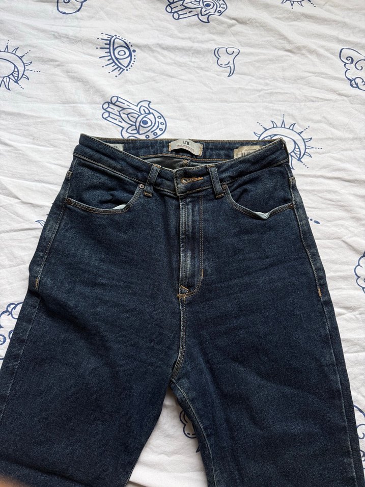 Lacivert renkli, tokalı ve fitted kesime sahip denim midi kot pantolon, sade tasarımıyla günlük sokak stiline uygundur. Aldim 2 kere giydim kumasi esnek yapida