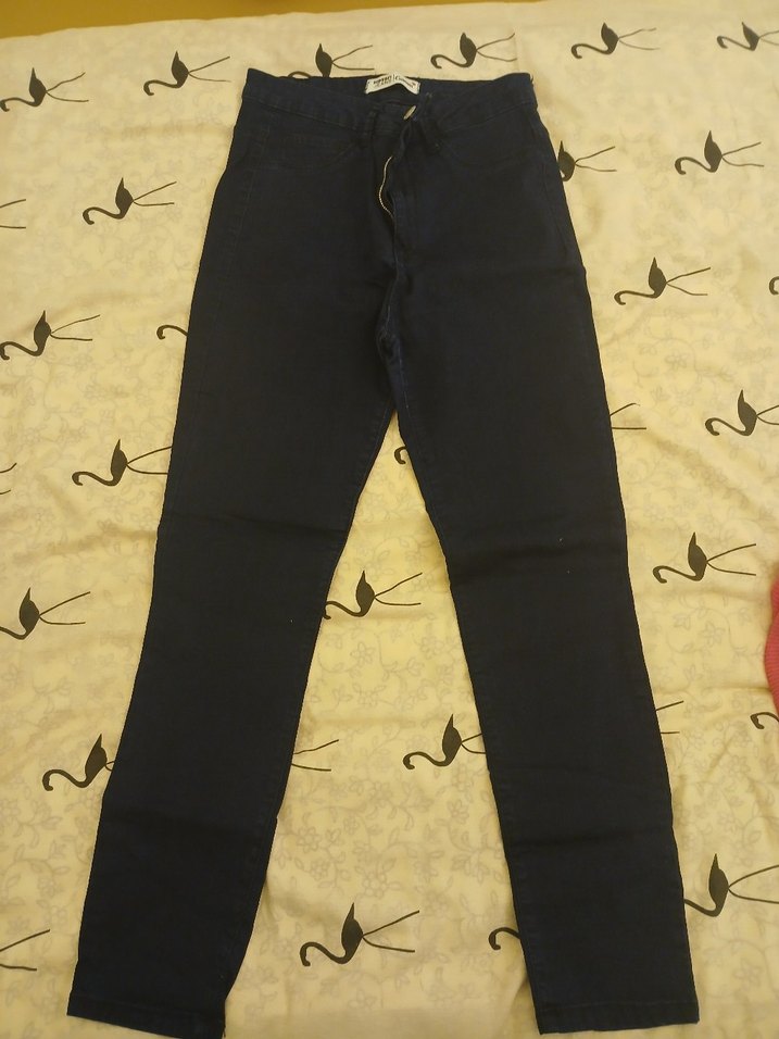 lacivert denim kumaştan, regular fit ve normal boyda kadın pantolon. Günlük kullanıma uygun, rahat ve şık görünümlü. hic giyilmedi L 32 W 32 42 bedene uyar, hafif esnek