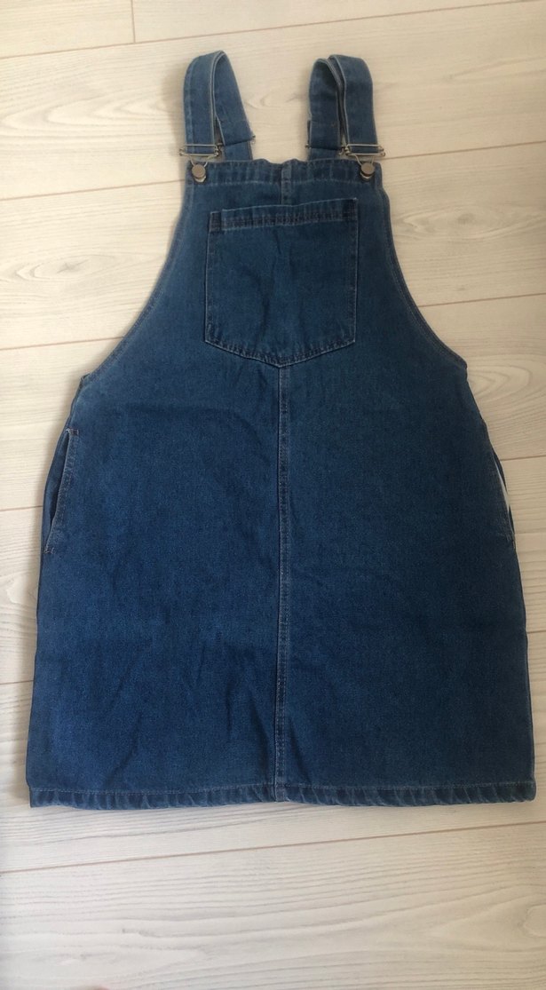 Lacivert denim midi uzunlukta, ayarlanabilir tokalı askılı, ön cepli, dar kesim kadın salopet. Günlük kullanım için uygundur.