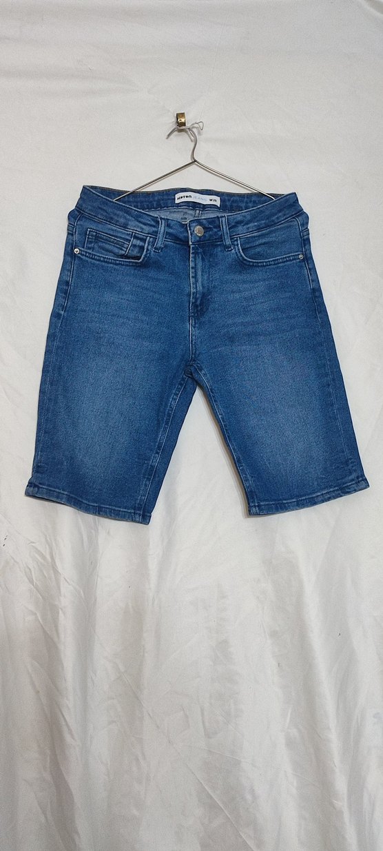 Lacivert renkli, regular fit kesim kadın denim mini şort. Günlük kullanım için rahat ve şık bir sokak stili sunar.